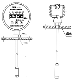例:表示量程1m桿長度1.2m,DN90的法蘭連接,隔離膜片316L不銹鋼接口、鑄鋁殼體,數(shù)碼管LED顯示,2個(gè)接點(diǎn)輸出,帶4~20mA輸出,工作電源AC/DC220V