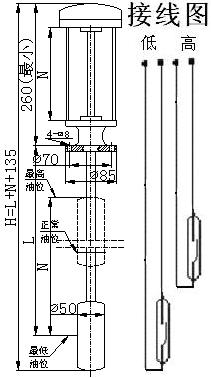 4)、本信號器出廠時預(yù)置的液位信號位置與實際不符時,可以改變相應(yīng)的磁控開關(guān)的接線長度來調(diào)整。